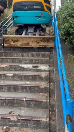 【悲報】川口ナンバーの外国人解体業者さん、重機で階段をぶっ壊しながら走行